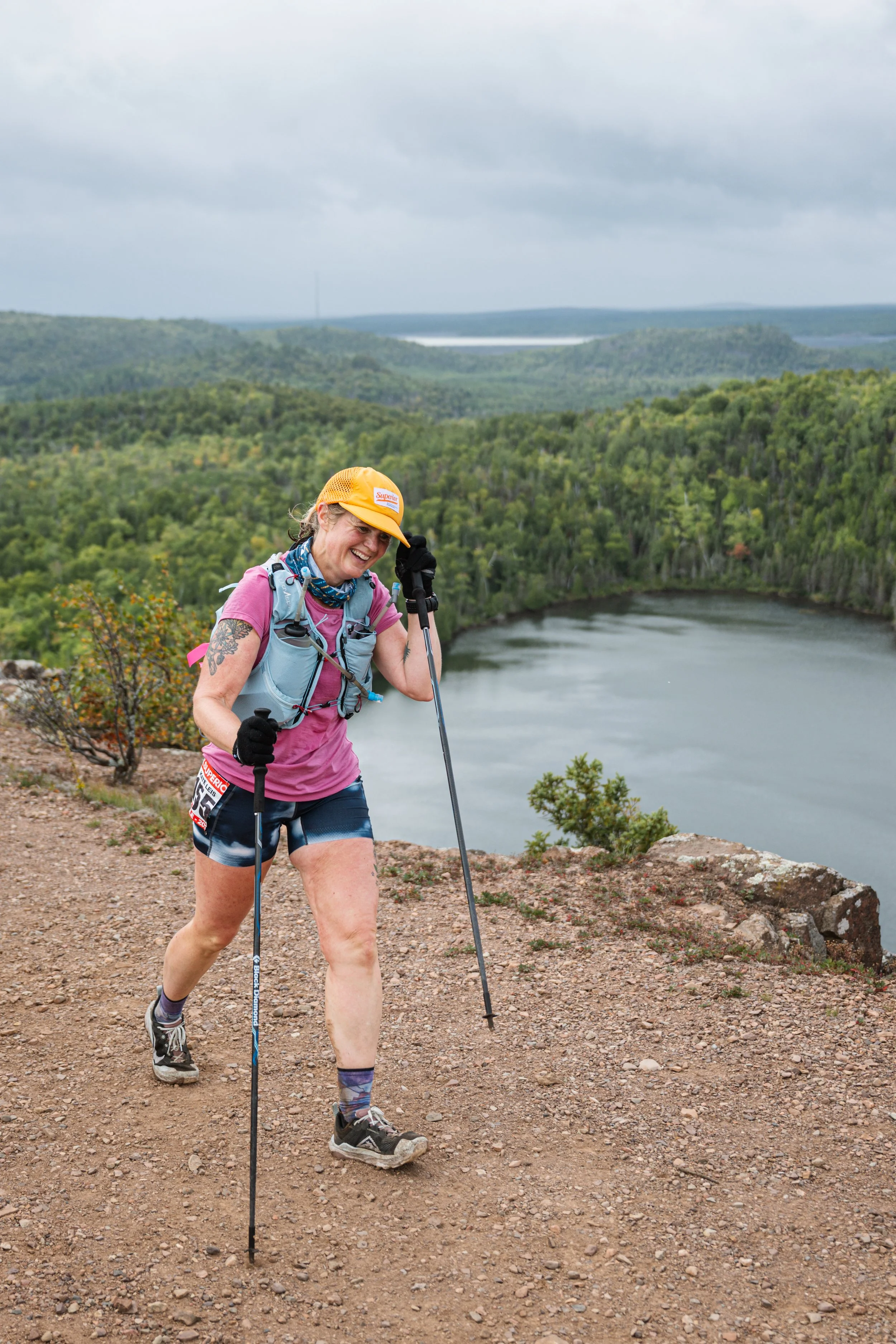 Saturday continued to ebb & flow. The miles passed quickly and I was motivated to push for as good of a finish time as I could muster. At one point climbing Carlton Peak, Alisha pushed the pace to pass a group of marathoners who were not climbing as efficiently as we wanted to. One of my strengths lies in climbing well even late in a race. We pushed up the technical, rocky climb with my heart pounding in my chest & my breath nearly wheezing from the effort. Crossing the top we moved down the other side and ran into the Sawbill aid station. It was exhilarating to have crushed that climb.