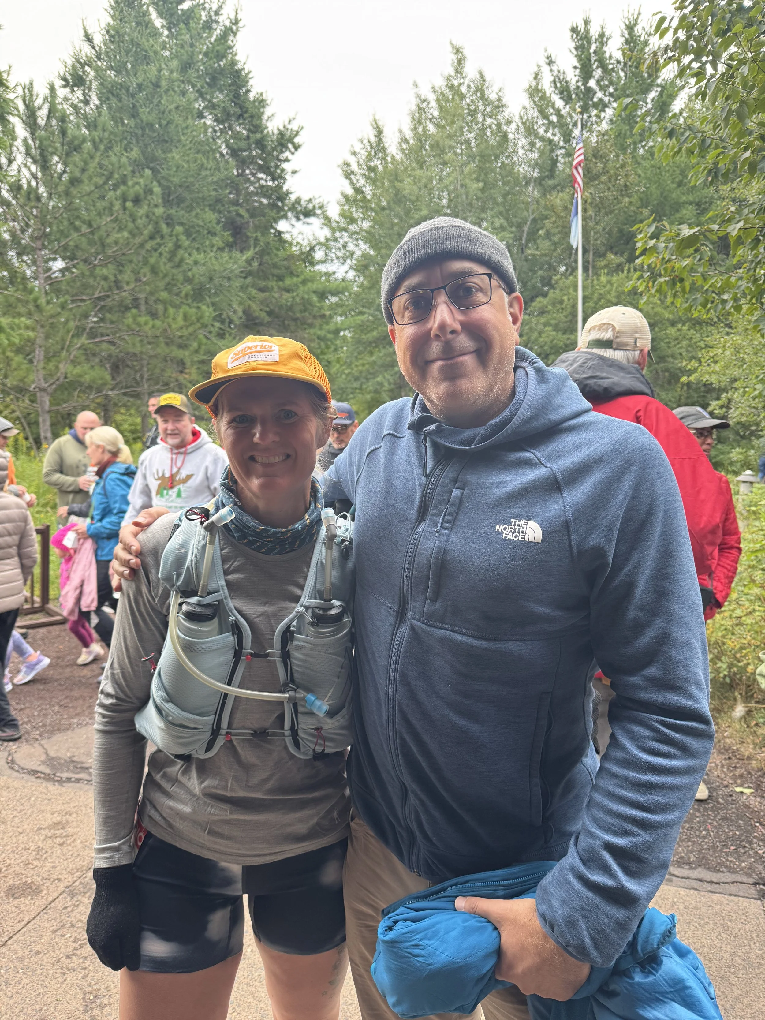 The first place you can access crew is mile 18.8 at Beaver Bay. I was surprised to see Matt there as we had originally planned that he would skip the first aid station and meet me at the following aid station, Silver Bay. As life would have it, as I was stepping out of the van at the campground that morning, I took a misstep and nearly rolled my ankle. Matt wanted to make sure that I was doing ok before continuing on (can we just take a minute & celebrate this guy?! Seriously, he’s the best!)